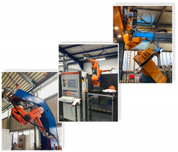 Mehr lesenDie Robotermechanik ORC 410 ist überkopf montiert an freiprogrammierbarem C-Ständer. Schweißtechnich ausgerüstet ist die Anlage zwei GLC 603 Quinto II im Tandem u. Einzeldrahtbetrieb. Mehr lesen...